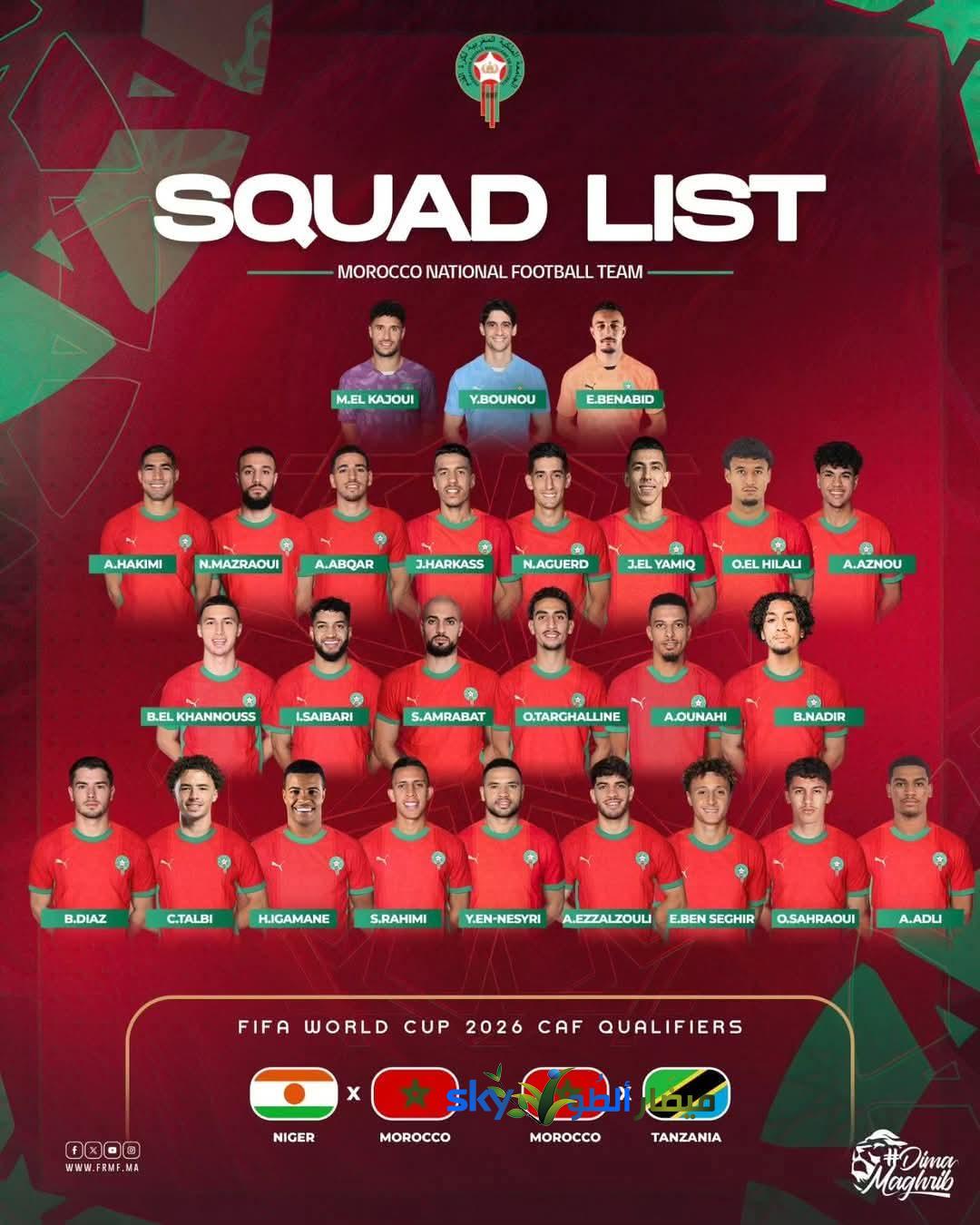 *قائمة المنتخب المغربي:*